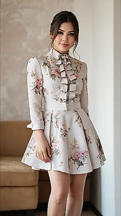 This dress is giving off major “tea party with the Queen” vibes, but like, a cool, modern Queen who’s totally on TikTok. I mean, seriously, who knew you could make a dress with flowers and a collar look so effortlessly stylish? It’s like the dress version of a super-organized yet totally chill best friend. Imagine showing up to school in this—everyone would be like, “Wow, she must have a personal stylist!”