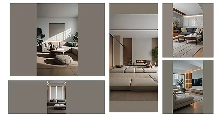 Everything in the room is arranged to make you feel relaxed. The low coffee tables are perfect for lazy afternoons spent reading or chatting. That bowl of fruit adds a pop of color, and honestly, who doesn’t love a decorative bowl of fruit? It’s the little details that make this space so special. Imagine yourself sprawled out on that sofa with your favourite book, a warm drink, and a friend. That’s what “clean and modern” can really mean: sophisticated comfort.