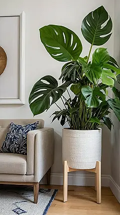 That monstera deliciosa is seriously showing off its leaves – they’re practically shouting, “Look at me! I’m a jungle queen!” Finding the right planter for your indoor plants can be tricky, like choosing the perfect outfit for a school dance. This stylish, raised planter gives this gorgeous green friend the VIP treatment it deserves, and let’s be honest, makes the whole room look instantly cooler. It’s the kind of upgrade that would even impress your grandma (unless she’s secretly jealous, of course).