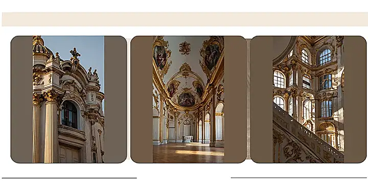 **Paragraph 1:** Wow, check out this room! It’s like stepping into a giant, super fancy cake, all swirling curves and glittering gold. That’s Baroque architecture for you – think seriously over-the-top decoration. Forget minimalist; this style screams “MORE IS MORE!” Imagine the builders: they probably had a competition to see who could add the fanciest gold leaf detail. It’s so busy it’s almost dizzying, but in a really beautiful way. It’s like they took a regular room and decided to cover it in every single kind of ornate detail they could think of.