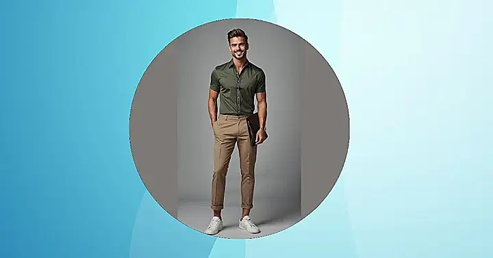 Thinking about smart casual outfits for guys? It’s less complicated than trying to understand algebra on a Monday morning. Think of it as dressing up just enough so your grandma would approve, but not so much that your friends think you’re going to a job interview for a fancy bank. This outfit is a prime example – nice pants, a neat shirt (bonus points for short sleeves that look sharp), and cool shoes that aren’t sneakers but aren’t dress shoes either. It’s the perfect balance, proving you can look sharp for stuff like family dinners or dates without feeling like you’re stuck in a penguin suit.