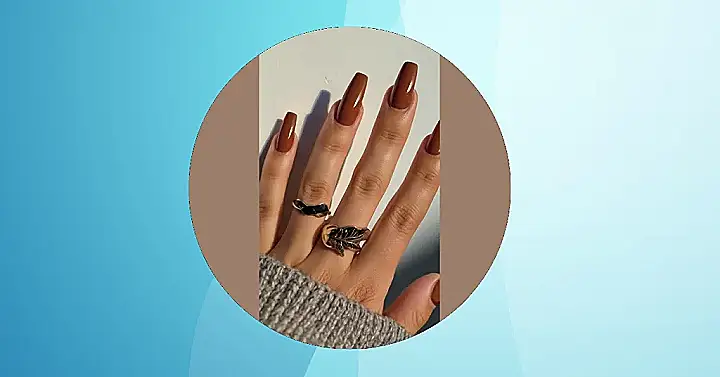 These nails are so gorgeous, they’re practically begging to be shown off! The rich brown shade reminds me of a cozy autumn day, maybe while sipping hot cocoa and watching the leaves change color. And that leaf ring? Totally adds to the natural vibe. It’s like wearing a tiny piece of the forest on your finger!