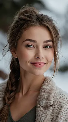 Imagine this: It’s a chilly winter day, and you’re bundled up in your warmest clothes. But even though it’s freezing outside, you want your hair to look amazing. You’re not about to let the cold steal your shine! This image shows how you can rock a stylish hairstyle even when the snowflakes are falling. The model’s long, flowing hair is perfectly tousled, and her cozy fur coat adds a touch of warmth and elegance.