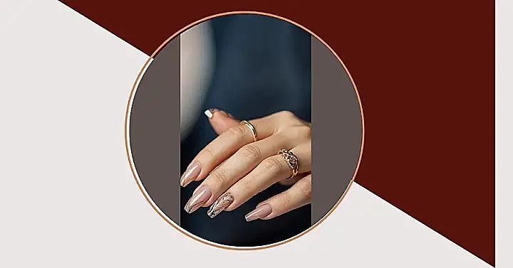 These nails are definitely not just plain old nude. They’ve clearly leveled up! The gold accents add a touch of fancy without being over the top, making your hands look effortlessly chic. Add those rings into the mix, and bam! You’ve got a whole vibe going on. It’s like your fingers are dressed up for a party but are also chill enough to just hang out. They prove that nude can be totally cool and even a little bit fancy when you add the right golden touch.