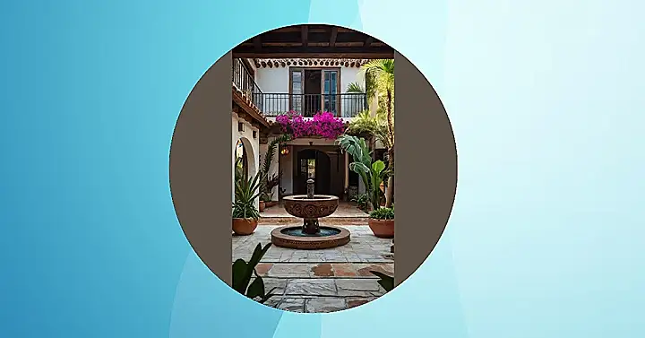 Imagine this: You’re strolling into a home straight out of a movie – all white walls, terracotta roofs, and arches that whisper tales of sun-drenched siesta. It’s a hacienda, a style of home that screams “relax” while secretly plotting your next amazing pool party. The huge tree in the courtyard almost seems to be saying, “Come on in! It’s shady and awesome under here.” And those giant planters? They’re not just for show; they’re silently judging whether you brought enough snacks for the fiesta.