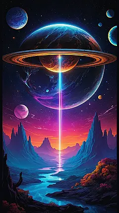 Imagine waking up every morning and seeing this epic wallpaper! It’s like a cosmic rave happening right above a super chill lake. You’ve got planets with rings that look like they’re ready to hula hoop, and others that are swirling with colors like a melted rainbow sherbet. Who needs a boring blue sky when you can have an entire universe throwing a party on your phone or laptop?