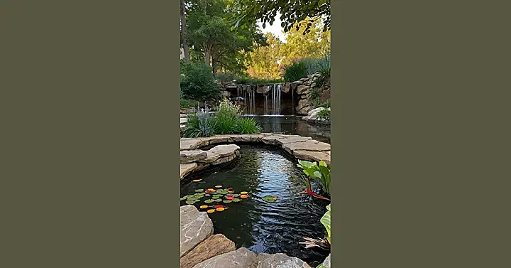 Imagine this: you’re a tiny frog, hopping from lily pad to lily pad in a sparkling pond. The water’s so clear you can almost see your reflection, and colorful lily pads float lazily on the surface. This isn’t just any pond, though – it’s a mini-waterfall paradise! A cute little cascade tumbles down mossy rocks, creating a soothing sound that’s perfect for a peaceful afternoon. It’s like having your own private, ridiculously charming house pond, complete with a small garden bursting with green plants. Who needs a giant swimming pool when you’ve got this?