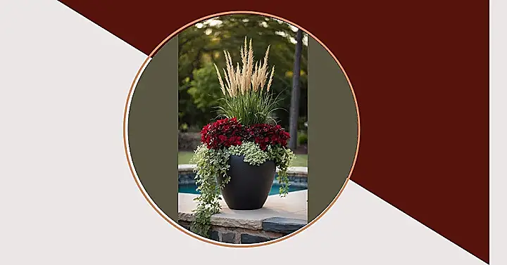 Check out the crew living in that pot! You’ve got the tall feathery grasses giving off major “I’m important” vibes, the deep red flowers adding a splash of drama, and the little green plants trailing over the side like they just don’t care. Using cool planters lets you play around with different plant heights and colors to create your own mini garden masterpiece right by your door. It’s basically decorating your entrance, but with living, breathing things that make your porch look extra welcoming and totally awesome.