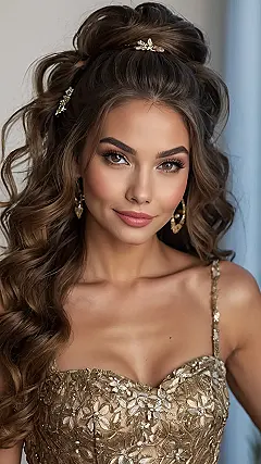 Hey there, future hair stylists! Christmas is just around the corner, and if you’re anything like me, you’re already dreaming of festive outfits and amazing hairstyles. This picture shows a seriously cool look – a half-updo with a braided crown and gorgeous, long, wavy hair. It’s super fancy but still looks totally achievable. Imagine rocking this at your Christmas party; you’d be the belle of the ball (or at least the best-haired person there)! It’s the perfect balance between elegant and fun— like Christmas itself!