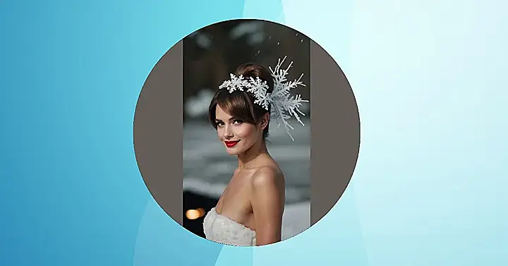 This picture shows a super festive hairstyle perfect for Christmas! Imagine rocking this look at your holiday party – all your friends will be saying, “Wow, that’s *snow* much better than my hair!” It’s got this amazing sparkly snowflake headband, which is way cooler than any reindeer antlers you’ll find at the mall. The hairstyle itself is elegant but still fun, like a fancy winter wonderland. Plus, that red lipstick? Totally adds a pop of Christmas cheer!