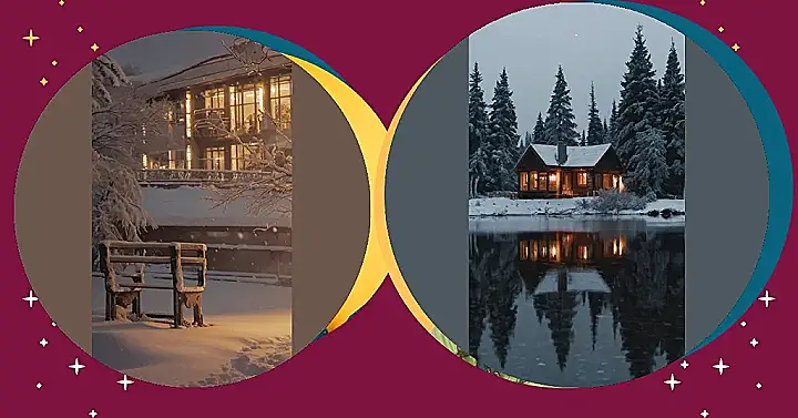 Imagine this: It’s a chilly winter night, snow is falling softly, and you’re snuggled up inside a cozy cabin by a sparkling lake. The fireplace is crackling, warm and inviting, and the only sound is the gentle lapping of water against the shore. You could almost reach out and touch the reflection of the cabin in the icy water, a perfect mirror image that looks like it’s floating in the air! Now that’s what I call a winter wonderland, and it’s so much better than being stuck inside doing homework!