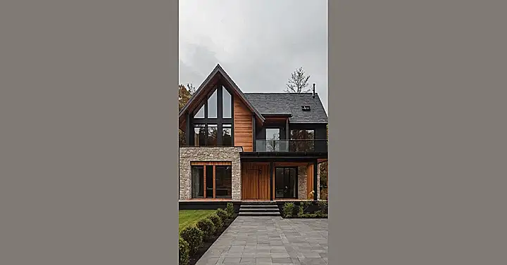 Check out this place! Forget those tiny little cabins from fairy tales; this wood house is seriously leveling up the game. It looks so sleek with all that polished wood mixed with stone, like it just got a major glow-up. You almost expect a knight in shining armor to walk out the front door, or maybe just someone really cool who appreciates architecture that doesn’t look like it was built by squirrels hoarding nuts. It’s got that fancy vibe that makes you think it’s probably too cool for splinters.