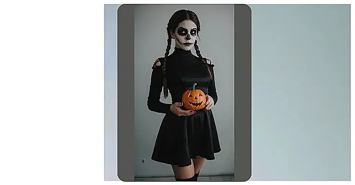 This costume is perfect for those who love a dramatic and slightly spooky look. It’s easy to pull off, even if you’re scrambling at the last minute. Just grab some black lace and a crown (or headband), and get creative with your makeup! This look is all about channeling your inner queen, with a dash of spooky charm.