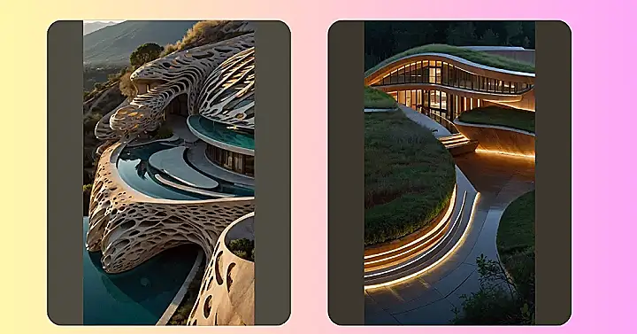 This building looks like it was designed by a bunch of friendly aliens who love the outdoors. The arches and curves make you feel like you’re walking through a giant, comfy cave. It’s like someone took nature itself and used it as a blueprint. The whole thing just flows like a river, and it even has a little pool to cool off in! The designers definitely knew how to make a house that’s as cool as a cucumber, or even cooler, because it’s got a swimming pool!
