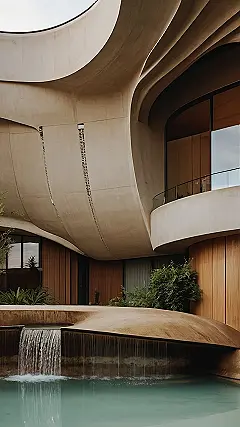 This building looks like it’s about to take a nap, right? The way it curves and flows is like a giant, super-smooth, concrete blob! Architects call this “organic architecture”, which basically means they want the building to feel natural, like it grew from the ground.