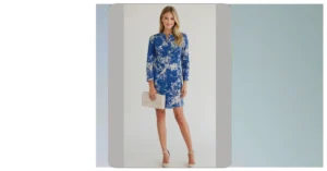 The blue floral blouse in the picture looks like it basically sprinkles sunshine wherever you go. Those cute pink and white flowers on that cool blue background? Totally makes you feel like you just stepped into a secret garden, minus the weird gnomes guarding the entrance. Wearing this top is probably the closest you can get to being a walking bouquet without someone actually trying to water you on the street. It’s the kind of shirt that just screams ‘happy vibes’ and makes you want to plan something fun.