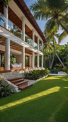 Checking out this picture makes you feel like you just stepped into a permanent vacation zone, right? This isn’t just a house; it’s basically permission to trade your school binder for a smoothie and spend all day staring at palm trees. It’s got that modern vibe, like something from a cool design magazine, but it’s totally chill with all that green stuff hugging it. You can practically hear the ocean waves and feel the warm breeze, even if you’re just looking at it on your screen. It looks so relaxed, you’d probably forget what deadlines even are.