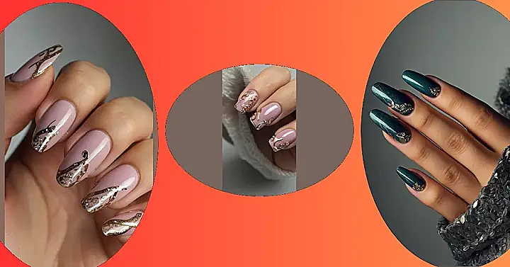 These nails are totally ready to ring in the new year! Imagine a super chic, pinky-nude base – like a comfy sweater for your fingertips. Then, BAM! Swirls of gorgeous gold and sparkly accents appear, like tiny New Year’s Eve confetti explosions. They’re fancy enough for a special occasion, but also chill enough for your everyday life. Seriously, it’s like wearing a mini-celebration on your hands all month long!