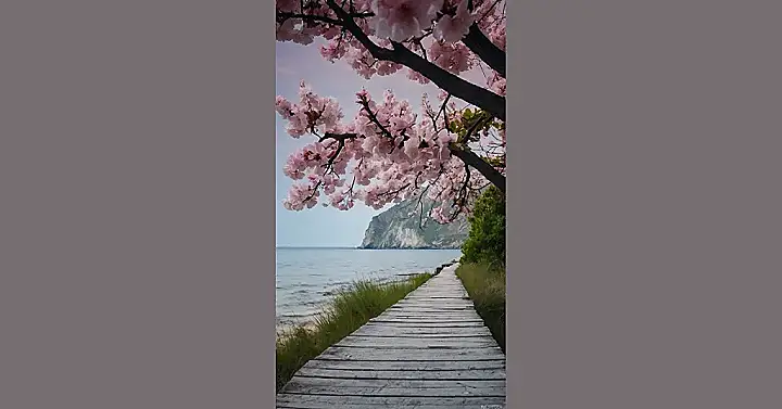 So, you know when you’re stressed about that pop quiz you totally forgot to study for? This picture is the opposite of that feeling. Imagine trading your backpack full of textbooks for a stroll down this wooden path, surrounded by pretty pink blossoms. It’s like nature’s way of saying, “Chill out, dude, everything’s gonna be okay!” Just looking at it makes you want to take a deep breath and forget all about homework.