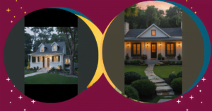 But then you look up, past the totally awesome mantle, and BAM! There’s another one! It’s like a fancy painting of a fire, framed in gold, sitting right there on the wall. This isn’t your grandma’s fireplace; it’s elevated style! You could practically have a staring contest with the flames while the downstairs fire does the heavy lifting for warmth. This living room definitely isn’t messing around when it comes to doubling down on the whole “warm and inviting” thing.