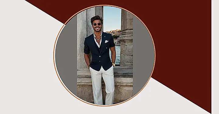 If you want to look like you just stepped out of a gelato shop in Rome, this look is totally your vibe! Imagine trading your usual jeans and t-shirt for these slick, light-colored pants and an open white shirt. It’s like upgrading from a scooter to a Ferrari… at least in terms of style points! All you need now is a cool pair of sunglasses and the confidence to pull off that “I just walked off a movie set” look.