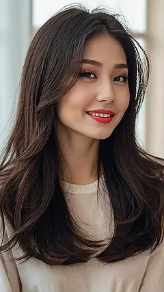 Wow, check out this gorgeous layered and textured hairstyle! It’s like a waterfall of shiny, dark chocolate, right? This isn’t your grandma’s boring bun – this style is all about movement and volume. Imagine the compliments you’d get! Plus, it looks super easy to maintain; just wake up, shake it out, and go! No fancy hairspray required (unless you want some extra sparkle, of course!). This style is perfect for anyone who wants to look effortlessly chic without spending hours in front of the mirror.