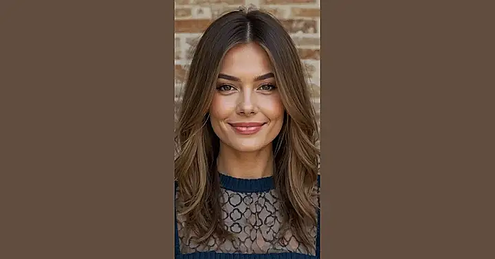 This hairstyle is seriously goals! Look at those layers – it’s like a waterfall of gorgeous brown hair, all perfectly placed and styled. It’s modern, it’s chic, and it looks like something a supermodel would rock on the runway (or, you know, maybe just rocking out to their favorite playlist at home). This “modern layered haircut” is the perfect blend of effortless cool and deliberate style, and honestly, makes even a simple cream sweater look amazing.