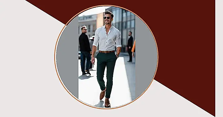 Look at this guy strolling down the street like he owns it! He’s rocking that “just stepped out of a fashion magazine” vibe, and honestly, it looks pretty effortless. You know those days when you throw on sweatpants and feel like blending into the furniture? Well, this outfit is the total opposite. It’s like he put on these clothes and suddenly unlocked a confidence superpower, making even walking look cool. That simple white shirt and sharp green pants combo is basically saying, “Yeah, I look good, and I didn’t even need a superhero cape to do it.” It just proves that putting a little thought into what you wear can make you feel ready to take on the world, or at least ace that pop quiz you forgot about.