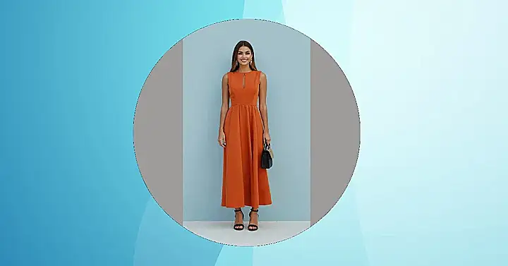 This burnt orange midi dress is the perfect outfit for a casual lunch date or a fancy one! It’s got that effortlessly chic vibe – imagine yourself strolling through a park, looking super stylish without even trying too hard. It’s the kind of dress that says “I’m comfortable, but also totally put-together,” which is basically the best kind of dress there is, right? You could even pair it with your favorite sneakers for a more relaxed look, or dress it up for the evening with some fancier shoes and jewelry. So versatile!