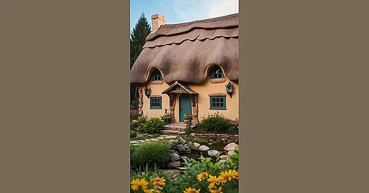 This cottage looks like it’s straight out of a fairy tale! With its thatched roof, crooked chimney, and charming little windows, it’s the perfect place for a cozy night in, filled with hot chocolate and maybe even a friendly ghost or two!