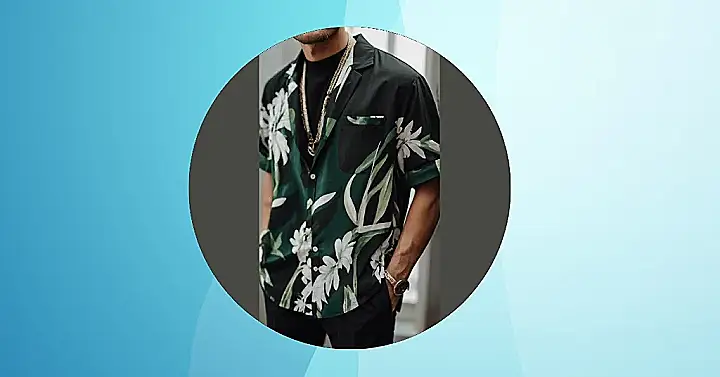 This shirt is like a jungle party on your torso, but way cooler. Imagine wearing this dark green, floral number to a fancy luau (but maybe skip the grass skirt). Those big, bold white flowers are totally making a statement – they’re like, “Look at me! I’m fabulous!” And paired with some sharp black pants, it’s a total win. It’s the perfect blend of relaxed vibes and dressed-up swagger, proving that comfort and style are BFFs. Plus, you could totally rock this with your coolest pair of sunglasses.