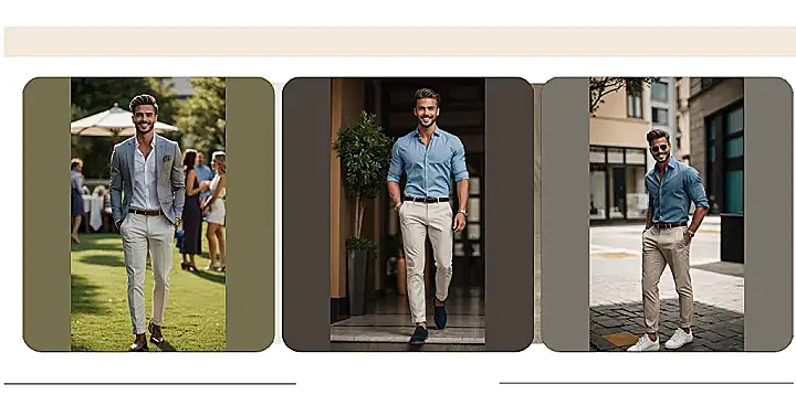 The best part about this kind of look is how simple yet effective it is. The light colors feel fresh and easy, and little things like the cool belt or those awesome blue slip-ons make it stand out without shouting. It shows that paying attention to fit and picking a few interesting details can upgrade your style big time. You don’t need a million different pieces or weird accessories; just picking quality basics and adding a pop of color or texture, like those blue shoes, makes you look like you actually know a thing or two about dressing well.