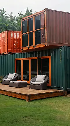 So, you know those big metal boxes that carry stuff on ships? Well, someone got super creative and stacked them up like LEGOs to make a house! This is called container architecture, and it’s like giving a shipping container a serious makeover. It’s pretty cool how they took something super industrial and turned it into a place where you could chill with palm trees and a sweet view.