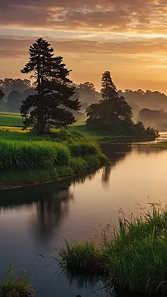 You know how sometimes you see something so peaceful, it makes you want to take a super long nap? Yeah, that’s this landscape. It’s got that “real scenery” vibe, like something out of a screensaver, but way better because it’s actually real! Hopefully, there are no mosquitoes or creepy crawlies ready to mess things up because I would never want to leave this river.