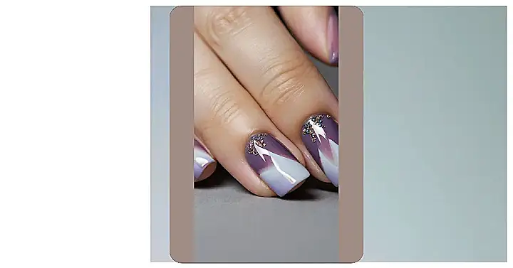**Paragraph 1:** OMG, check out these nails! They’re totally trendy and minimalist – like, the epitome of chic without being too much. Imagine: soft, pretty pastel colours (think lilac and creamy beige) on perfectly shaped nails. Some have these delicate gold lines, like tiny works of art, and a few are even sprinkled with sparkly rhinestones. It’s like someone took a sigh of elegance and painted it onto fingertips! It’s the perfect balance of simple and sophisticated, not too flashy, not too boring – just right.
