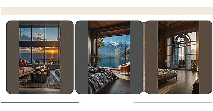 The image shows a cozy room with large windows that offer stunning views of the mountains. The furniture is simple and comfortable, perfect for lounging and enjoying the scenery. You can almost feel the fresh air and smell the wildflowers. It’s a place where you could escape the hustle and bustle of everyday life and just be present in the moment. Maybe you could even grab a good book and snuggle up on that comfy daybed! It’s the kind of room that makes you want to ditch your phone and just soak in the beauty of the world around you. Who wouldn’t want to relax in a room like this?