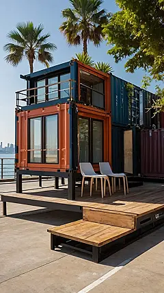 So, you know those big metal boxes that carry stuff on ships? Well, someone got super creative and stacked them up like LEGOs to make a house! This is called container architecture, and it’s like giving a shipping container a serious makeover. It’s pretty cool how they took something super industrial and turned it into a place where you could chill with palm trees and a sweet view.