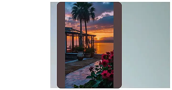 This picture is like a postcard from a chill vacation! Imagine waking up to this amazing view – the sun peeking through the clouds, painting the sky in beautiful colors, and the ocean looking like a giant, shimmering pool. You could sit by the window with a warm cup of coffee and watch the sunrise, maybe even with a tablet in hand to catch up on your favorite show or browse the internet. Who needs a fancy alarm clock when you have this view to wake up to?