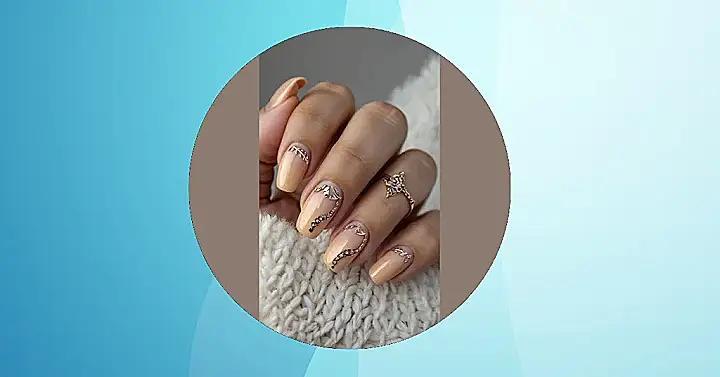 It’s seriously impressive nail art. Imagine trying to recreate this during lunch break! The artist must have the patience of a saint because who has time for that? The nude color and the gold are great colors to choose. They complement each other so it must be a good option for you as well.