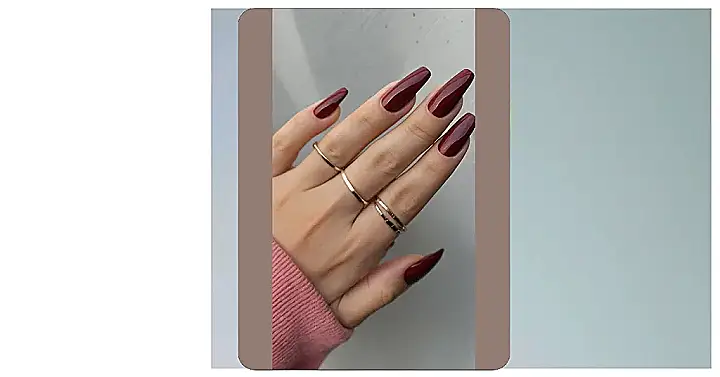 Those nails are fierce! It’s like they’re screaming, “Fall is here, and I’m ready to rock!” The deep red polish is totally on-trend, and the long, pointy shape is super chic. Plus, those shiny gold rings are the perfect touch to complete the look. Seriously, who needs leaves when you have nails this awesome?