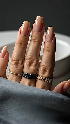 And let’s talk about those rings! They are absolutely doing the most, shining bright even when the nails are keeping it low-key. Maybe these nails are the quiet friend letting the accessories have their moment. Or maybe they’re secretly plotting their own glow-up, practicing their smoothness so they can handle the eventual power of a full-on sunset chrome takeover. Paired with that cozy yellow sleeve, this hand is definitely ready for whatever look comes next, glitter bomb or not!