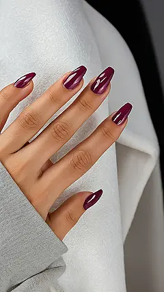 Check out those nails in the picture – they’re rocking that deep, wine-ish color that looks seriously chic and super glossy, like tiny elegant mirrors on your fingertips! This is totally what we mean by “simple classy nails.” They look polished and sophisticated without needing a million tiny gems or drawings, which is awesome because who has time for all that? It’s like your nails decided to go to finishing school and came back looking effortlessly amazing, making you feel instantly put-together even if you rolled out of bed five minutes ago.