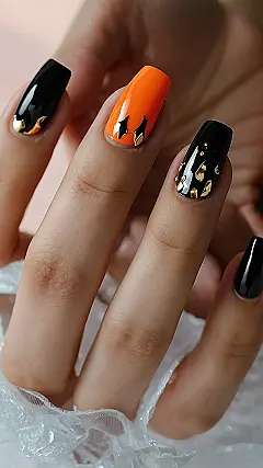These nails are so cute, they’re practically trick-or-treating themselves! With black and orange, and even a sprinkle of gold, these nails are a fun and festive way to show your spooky spirit. The little bats add a touch of mischief, and the gold accents are like a little bit of candy for your fingers.