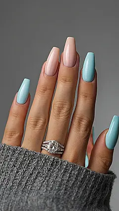 Looking at these nails just makes you feel like summer decided to show up early! Those alternating pink and blue shades aren’t just pretty; they’re practically screaming “beach day” and “poolside chill”. It’s like one hand is saying “Hello, cotton candy skies!” while the other is totally rocking that “crystal clear ocean water” vibe. Getting your nails done in colors this fun is basically the universe giving you permission to relax and maybe even forget about homework for a bit.