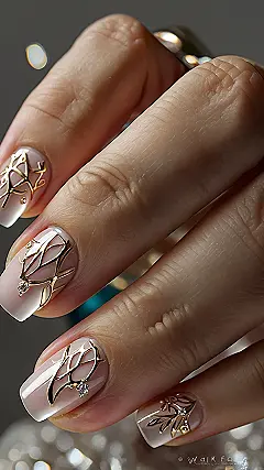 When you think “bright summer nails,” your brain probably jumps straight to blinding neon pink or maybe cute little watermelon designs. And hey, those are totally awesome and scream ‘beach party’! But sometimes, ‘bright’ can mean something else entirely – like nails that literally sparkle and catch the light so much, they make everything else look dull. Check out these fancy fingertips! They’re not screaming for attention with loud colors; they’re just quietly dazzling everyone with that cool gold leaf pattern and tiny little bling that looks like mini diamonds.