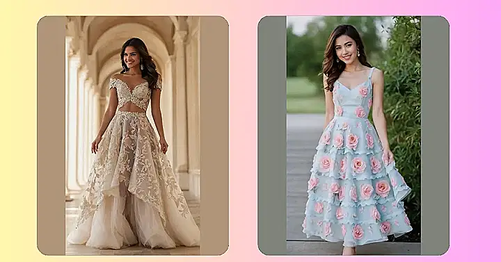 Seriously, this outfit is rose-olutely amazing! Whoever designed it definitely has a knack for making things look like they popped straight out of a fairytale. You could wear this to prom, a fancy dinner, or even just to make grocery shopping feel extra special. It’s like wearing a cloud of flowers, and who wouldn’t want that? Prepare for compliments, because this Paris-inspired frock is a total showstopper.