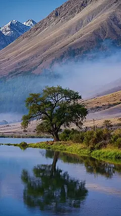 This photo looks like nature decided to take a super chill selfie. I mean, that tree is totally striking a pose, right? And the water’s acting like a perfect mirror, making sure you get the best angle. Even the mountains in the background are photobombing a little bit, just adding to the overall awesomeness of the shot.