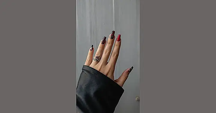 Those nails are fierce! It’s like they’re screaming, “Fall is here, and I’m ready to rock!” The deep red polish is totally on-trend, and the long, pointy shape is super chic. Plus, those shiny gold rings are the perfect touch to complete the look. Seriously, who needs leaves when you have nails this awesome?