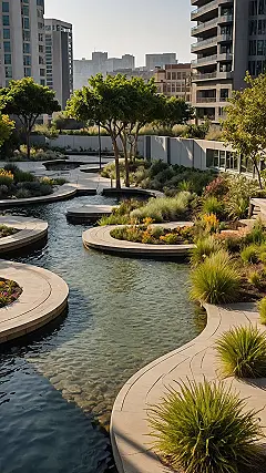 Think cities are just endless blocks of concrete where the only green you see is maybe a lost weed trying its best? Nope! Some clever folks, like the ones who planned this cool spot, are totally upgrading the urban scene. They’re basically giving our busy city landscapes a fancy makeover, adding watery features that look like they’re doing a little dance and plants that probably feel like they just won the lottery because they get to hang out in such a nice place instead of a cracked sidewalk. It’s like Mother Nature decided to throw a surprise party in the middle of downtown!