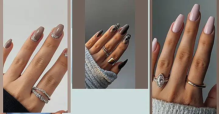Don’t forget your rings! The gold rings in the image are the perfect way to complete this chic nail look. Maybe you’re not ready for a full-on glitter bomb, but you can definitely rock a few glittery accents. Just remember, a little sparkle goes a long way!